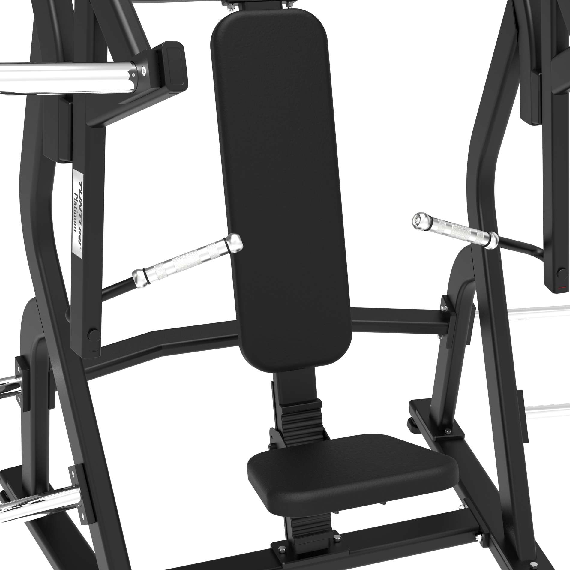 Tunturi Platinum Chest Press on suunniteltu maksimaaliseen lihaskasvuun ja voiman kehittämiseen. Riippumattomat vetovarret takaavat tasapainoisen lihasaktivoinnin ja seuraavat luonnollista liikerataa, mikä tarjoaa vapaan ja tehokkaan harjoittelukokemuksen. Tukeva rakenne ja ergonominen viimeistely tekevät siitä ihanteellisen kuntosaleille ja vakaville voimaharjoittelun harrastajille.