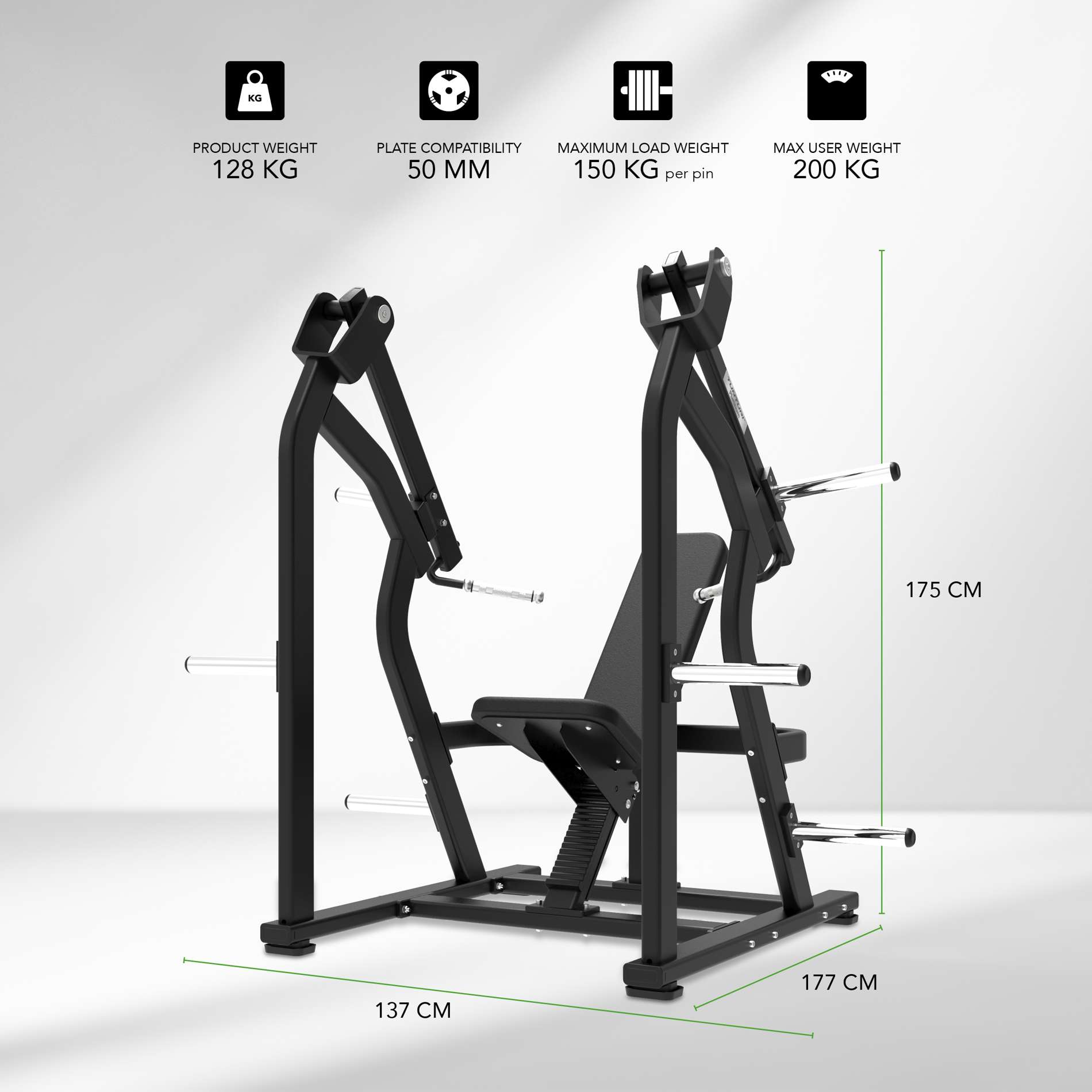 Tunturi Platinum Shoulder Press on suunniteltu hartialihasten kohdennettuun harjoitteluun. Pystysuora puristusliike aktivoi etu- ja keskimmäisiä olkapäälihaksia ja aktivoi kolmipäistä lihasta tukilihasryhmänä. Ketjulla kuormitettu vastus ja isolateraalinen liike mahdollistavat luonnollisen voima- ja stabiliteettiharjoittelun.